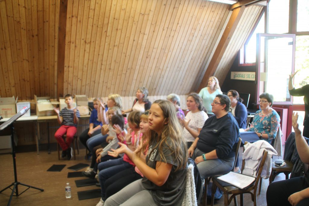 C.: On essaie de prendre les enfants à partir de 7 ans car d’expérience, on s’est rendu compte qu’avant cet âge-là, assister à 1h15 de répétition, assis sur une chaise, c’est un peu compliqué. Maintenant, il y a quand même des exceptions. On a une petite fille qui est venue chanter avec sa maman et qui venait assister aux répétitions car elle ne pouvait pas faire autrement. On l’a entendue chanter et on n’a pas pu faire autrement que de la mettre en valeur à 5 ans car elle chantait vraiment bien.