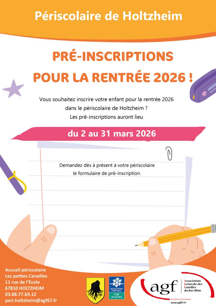 - Par mail à peri.holtzheim@agf67.fr ou format papier en remplissant le formulaire de demande d’inscription suivant :
